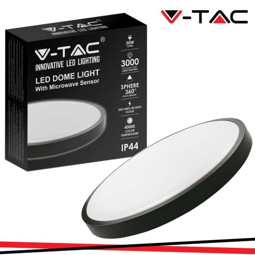 30W LED Dome Light rotondo Microwave Sensor Cornice nera 4000K IP44