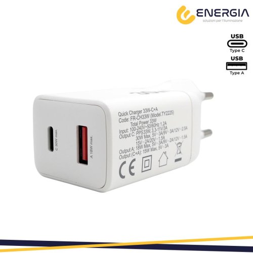 33W GAN USB RICARICA RAPIDA 1USB-C + 1USB