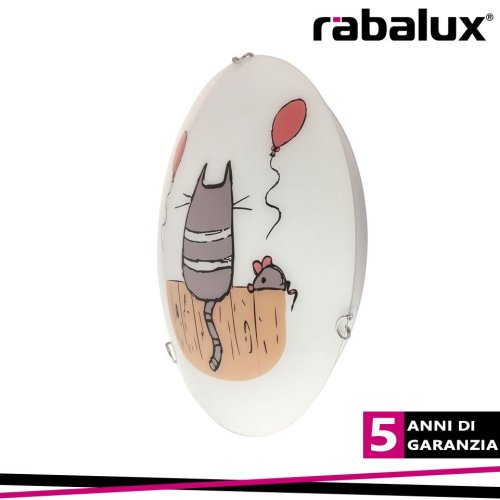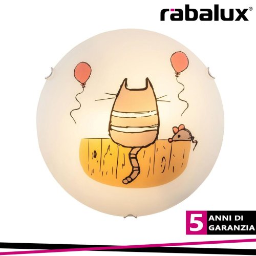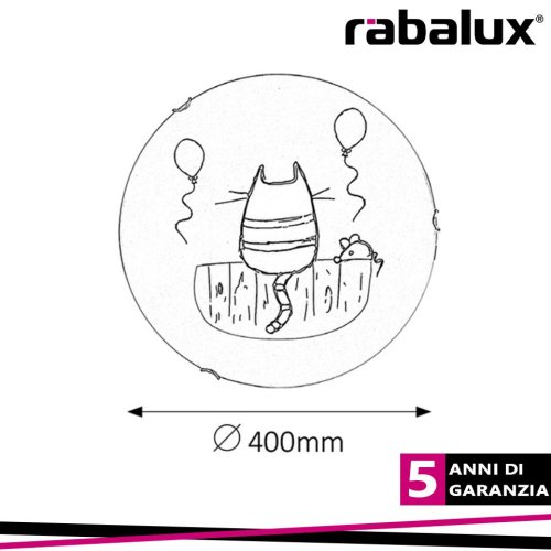 Applique Cathy.Disegnata da Rábalux per te: la lampada per bambini di Rábalux con un proprio design. Struttura in metallo diametro 40 cm e paralume in vetro con motivi colorati e 2 prese. L'applique può essere utilizzata con 2 sorgenti luminose a risparmio energetico e con una potenza fino a 60W ciascuna, attacco tipo E27.CARATTERISTICHE DEL PRODOTTO:categoria di prodottoIlluminazione interna:TipoLampade per bambini:StileStandard:CameraLa stanza dei bambini:Tecnologia LEDNo:Protezione IPIP20:Colore della lampadamulticolore:Materiale della lampadametallo:Colore del paralumemulticolore:Materiale del paralume=Vetro:Garanzia (anni)=5:Numero di presa=2:PRESA=E27:Specifiche dell'apparecchio di illuminazione=E27 2x MAX 60W:Tensione applicata=230V, 50Hz:Diametro=400.0:Dimensioni scatola unica X (cm)=10.5:Dimensioni scatola unica Y (cm)=41.0:Dimensioni scatola unica Z (cm)=41.0:Peso netto (kg)=1.4:Peso lordo=1.64:Vetro di ricambio nr.=681:Progettato da Rabalux=sì:Classe di protezione=I