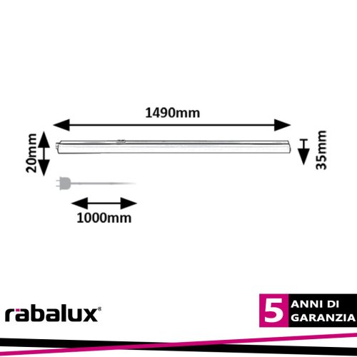 Lampade per interno.La luce da armadio Rábalux Bareg è la scelta ideale per chi cerca una soluzione di illuminazione moderna con funzioni intelligenti per una cucina spaziosa. Questo modello è adatto anche per i più grandi piani di lavoro della cucina grazie alle sue dimensioni e intensità luminosa, fornendo un’illuminazione efficace su un’area molto ampia durante le fasi che precedono la preparazione dei pasti e la cottura. La luce da cucina è interamente realizzata in plastica bianca e dispone di una sorgente luminosa LED integrata. La temperatura del colore può essere cambiata tramite un interruttore a muro: è possibile scegliere tra una luce calda e una luce bianca naturale, a seconda delle necessità. La luce da armadio può essere collegata in serie con o senza cavo. La tecnologia LED garantisce un funzionamento efficiente dal punto di vista energetico e una lunga durata.Caratteristiche del prodotto:Categoria=interni:Stile=Tecnico:Tipologia di camera consigliata=cucina:Temperatura del colore=variabile:Flusso luminoso della sorgente luminosa (lm)=2000:Specifiche della sorgente luminosa=20W:Tecnologia LED=sì:Protezione IP=IP20:Colore della lampada=bianco:Materiale della lampada=plastica:Colore del paralume=bianco:Materiale del paralume=plastica:Durata della sorgente luminosa (h)=25000:Classe energetica della sorgente luminosa=F:Garanzia (anni)=5:Consumo energetico ponderato (kwh/1000 Ah)=20.0:Specifiche dell'apparecchio di illuminazione=20W:Tensione applicata=230V, 50Hz:Distanza dal muro=35.0:Orizzontale (mm)=1490.0:Verticale (mm)=20.0:Misura unica della scatola X (cm)=165.0:Misura unica della scatola Y (cm)=3.0:Misura unica della scatola Z (cm)=4.0:Peso netto (kg)=0.278:Peso lordo=0.376:Temperatura del colore (K)=3000/4000:Temperatura colore variabile=sì:Tipo di interruttore=interruttore:Wi-Fi=non:Classe di protezione=II:Metodo di impostazione della temperatura del colore=interruttore:Flusso luminoso della sorgente luminosa=2400