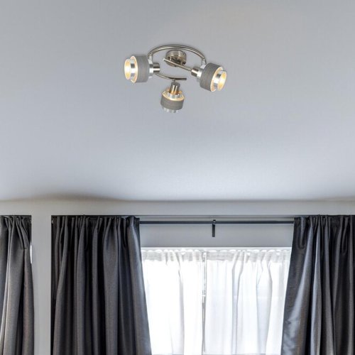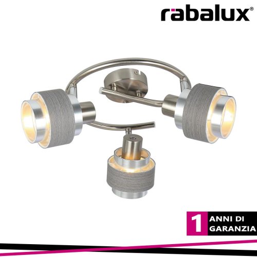 Applique Basil.Il triplo faretto Basil è caratterizzato da un design e colori moderni ed eleganti. Con la sua combinazione cromatica cromo satinato-rovere argento, la lampada in metallo e plastica è resa particolarmente interessante dalla testa della lampada composta da elementi cilindrici e dai suoi paralumi con copertura color rovere. Le teste delle lampade sono posizionate su un anello metallico a spirale partendo dalla base decorativa. Basil può essere montato in più stanze della tua casa moderna: puoi metterlo in soggiorno, camera da letto, studio o corridoio: con il suo design accattivante sarà un'aggiunta elegante al tuo arredamento. Se lo metti nella tua camera da letto o nel soggiorno, vale la pena scegliere lampadine a luce bianca calda che miglioreranno l'atmosfera intima e accogliente della tua casa. Il faretto può essere utilizzato con tre sorgenti luminose con potenza fino a 10 W ciascuna, attacco tipo E14. Il diametro del Basil dotato di una base decorativa rotonda è di 440 mm e la sua distanza dal soffitto è di 150 mm. Questo modello viene consegnato senza lampadine.CARATTERISTICHE DEL PRODOTTO:categoria di prodotto=Illuminazione interna:Tipo=Faretti:Stile=Moderno:Camera=soggiorno, camera da letto, studio:Tecnologia LED=No:Protezione IP=IP20:Colore della lampada=cromo satinato:Materiale della lampada=metallo:Colore del paralume=quercia d'argento:Materiale del paralume=plastica:Garanzia (anni)=1:Numero di presa=3:PRESA=E14:Specifiche dell'apparecchio di illuminazione=E14 3X MAX 10W:Tensione applicata=230V, 50Hz:Distanza dal soffitto=155.0:Diametro=370.0:Peso netto (kg)=0,96:Peso lordo=1.06:Vetro di ricambio nr.=19795:Classe di protezione=I