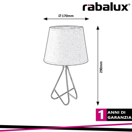 Lampada da tavolo Blanka.Rappresentando lo stile industriale, la lampada da notte Blanka, realizzata in una combinazione di colori oro rosé e nero, può essere posizionata sul comodino della camera da letto o su un tavolino basso del soggiorno. L'apparecchio in metallo è completato da un paralume in tessuto e da una base decorativa arrotondata e curva. Il paralume nero assicura che la lampada da tavolo emetta tutta la luce necessaria nel caso in cui abbiamo bisogno di un po' di illuminazione di notte. La Blanka può essere utilizzata con un'unica sorgente luminosa con una potenza fino a 40W, il tipo di presa è E14. Puoi scegliere una lampadina bianca calda o naturale. La lampada da tavolo può essere azionata con un interruttore a cavo. L'altezza della lampada da comodino Blanka è di 290 mm e il diametro del paralume è di 170 mm. Questo modello viene fornito senza sorgente luminosa.CARATTERISTICHE DEL PRODOTTO:categoria di prodotto=Illuminazione interna:Tipo=Lampade da comodino:Stile=Industriale:Camera=soggiorno, camera da letto:Tecnologia LED=No:Protezione IP=IP20:Colore della lampada=cromo:Materiale della lampada=metallo:Colore del paralume=grigio:Materiale del paralume=tessile:Garanzia (anni)=1:Numero di presa=1:PRESA=E14:Specifiche dell'apparecchio di illuminazione=E14 1x MAX 40W:Tensione applicata=230V, 50Hz:Verticale (mm)=290.0:Diametro=170.0:Dimensioni scatola unica X (cm)=23.0:Dimensioni scatola unica Y (cm)=17.5:Dimensioni scatola unica Z (cm)=17.5:Peso netto (kg)=0.2:Peso lordo=0.4:Tipo=interruttore-cavo:Vetro di ricambio nr.=19892:Classe di protezione=II
