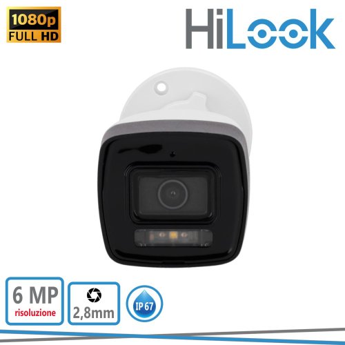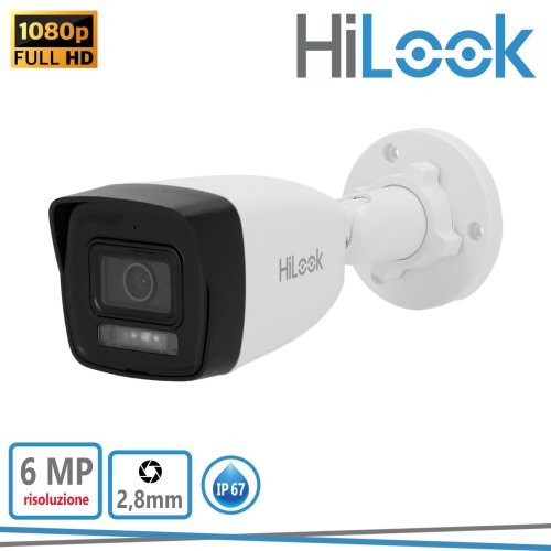 Telecamera di rete fissa Bullet Smart Hybrid Light MD 2.0 da 6 MP.Immagini di alta qualità con risoluzione di 6 MP.Supporta il rilevamento di persone e veicoli.Smart Hybrid Light: tecnologia avanzata a lunga autonomia.Tecnologia di compressione efficiente H.265+.Supporta l'archiviazione integrata fino a 512 GB (slot per scheda SD).Fornisce sicurezza in tempo reale tramite audio bidirezionale integrato.Resistente all'acqua e alla polvere (IP67)SPECIFICHE:.Sensore ottico CMOS a scansione progressiva da 1/2,4".Risoluzione massima 6 Megapixel (3200x1800).Frequenza dei fotogrammi Flusso principale Risoluzione: 20 fps (3200x1800, 2688x1520, 1920×1080, 1280×720).Frequenza dei fotogrammi Sub Stream 20 fps (1280×720, 640×480, 640x360).Compressione Formato H.265+ / H.264+ / H.265 / H.264.Velocità in bit 32 Kbps 16 Mbps.Ottica 2,8 millimetri.Campo visivo (FOV) A: 105°, V: 55°, P: 127°.Illuminazione minima Colore: 0.005 Lux @(F1.6, AGC ON), 0 Lux con IR portata 30 m.Giorno/notte Filtro meccanico ICR removibile.Miglioramenti immagine WDR (120 dB), BLC, HLC, 3D-DNR, AGC, AWB, ROI, Funzione mirror, Mascheratura privacy.Rilevamento di movimento Rilevamento del movimento 2.0 con classificazione di persone e veicoli (applicato al rilevamento del movimento)..Memoria interna Non disponibile.Audio Microfono integrato.Tipo di audio Mono.Compressione audio G.711ulaw/G.711alaw/G.722.1/G.726/MP2L2/PCM/AAC-LC.Bitrate audio 64 Kbps (G.711 madness/G.711 light)/16 Kbps (G.722.1)/16 Kbps (G.726)/da 32 a 160 Kbps (MP2L2)/da 16 a 64 Kbps (AAC-LC).Interfaccia di rete Ethernet 10/100M BaseT.Accesso remoto Browser Web, App Smartphone Hik-Connect, Software PC iVMS-4200 e Hik-Central.Interoperabilità ONVIF, ISAPI.Alimentazione CC 12 V / 410 mA / 5 W max. /PoE IEEE802.3af.Grado di protezione Impermeabile IP67.Materiale Metallo e plastica.Temp. funzionamento Temperatura -30ºC +60ºC.Dimensioni 69,1 (altezza) x 66 (larghezza) x 184,1 (profondità) mm