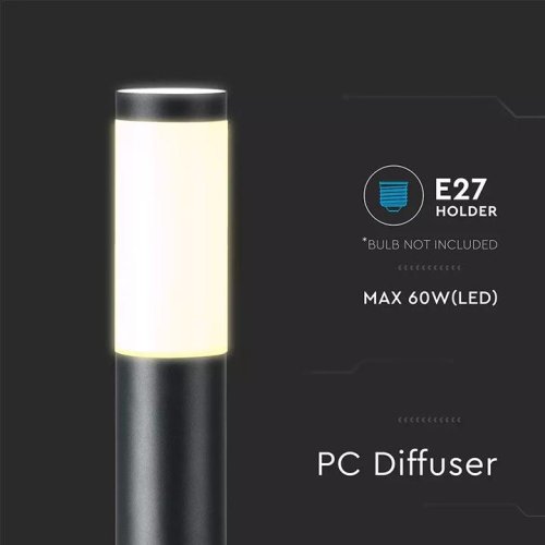 E27 Paletto con Lampada 110cm Sensore Corpo in Acciaio Inox Nero IP44
