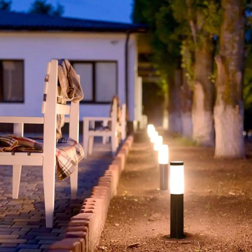 E27 Paletto con Lampada 45cm Sensore Corpo in Acciaio Inox Nero IP44