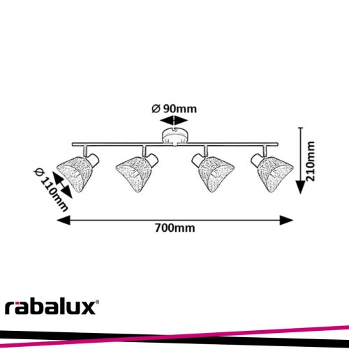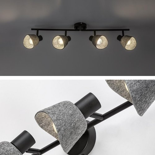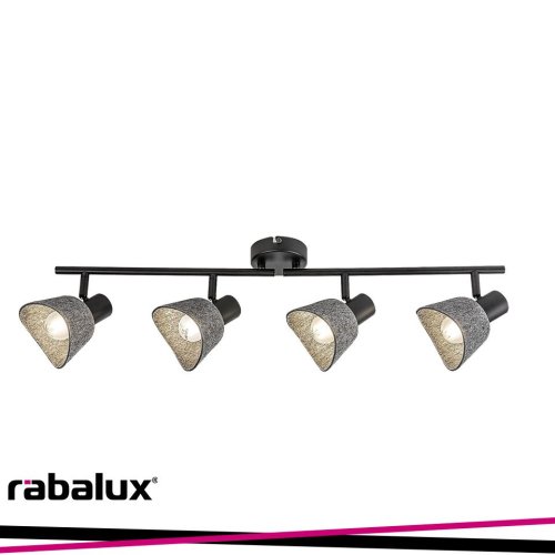 Applique a muro.Il faretto da soffitto a 4 luci Rábalux Farelia è consigliato a chi cerca una lampada dal design originale per la propria casa moderna, che contribuisca a creare unâatmosfera accogliente. Questo modello è realizzato in metallo nero con paralumi in feltro grigio e può essere fissato al soffitto tramite una piccola base decorativa rotonda. Il materiale del paralume è in feltro ecologico, prodotto con materiali riciclati. Le testate delle lampade sono sorrette da una lunga barra cilindrica. La forma curva dei paralumi a campana, unita al morbido feltro, conferisce alla lampada un aspetto gradevole e accogliente. à la scelta ideale per il soggiorno, la camera da letto o lo studio. Può essere utilizzata con quattro lampadine, ciascuna con una potenza massima pari a 10 W. Il tipo di attacco è E14. Il faretto a 4 luci è dotato di testate flessibili. La lampada viene fornita senza sorgenti luminose.Caratteristiche del prodotto:Categoria=Luci per interni:Tipo=Lampada spot:Stile=Moderno:Tipologia di camera consigliata=soggiorno, camera da letto, stanza da lavoro:Protezione IP=IP20:Colore della lampada=nero:Materiale della lampada=metallo:Colore del paralume=grigio:Materiale del paralume=feltro:Sorgente luminosa inclusa=no:Numero di portalampada=4:Tipo di portalampada=E14:Specifiche dell'apparecchio di illuminazione=E14 4X MAX 10W:Tensione applicata=230V, 50Hz:Distanza dal soffitto=210.0:Orizzontale (mm)=700.0:Diametro (mm)=110.0:Misura unica della scatola X (cm)=16.0:Misura unica della scatola Y (cm)=12.0:Misura unica della scatola Z (cm)=50.0:Peso netto (kg)=0.68:Peso lordo=0.923:Wi-Fi=no:Dimensioni di installazione (mm)=90.0:Classe di protezione=I