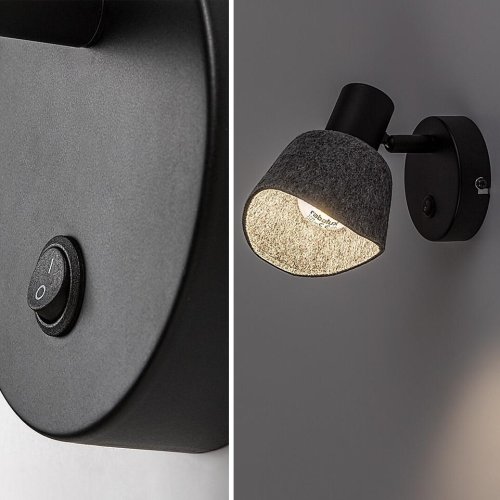 Applique a muro.Il faretto da parete Rábalux Farelia è consigliato a chi ama le lampade dal design originale che contribuiscono a creare unâatmosfera accogliente. Questo modello è realizzato in metallo nero con un paralume in feltro grigio. Il materiale del paralume è in feltro ecologico, realizzato con materiali riciclati. La lampada può essere fissata alla parete tramite una piccola base decorativa rotonda e si aziona mediante un interruttore posto sulla base. La parte inferiore del paralume a forma di campana è curva, il che, insieme al materiale morbido in feltro, conferisce alla lampada un aspetto piacevole e accogliente. à la scelta ideale per il soggiorno, la camera da letto o lo studio. Può essere utilizzata con una sola lampadina di potenza massima pari a 10 W. Il tipo di attacco è E14. Il faretto è dotato di una testata flessibile e pratica, che consente di orientare la luce secondo le esigenze. La lampada viene fornita senza fonte luminosa.Caratteristiche del prodotto:Categoria=Luci per interni:Tipo=Lampada spot:Stile=Moderno:Tipologia di camera consigliata=soggiorno, camera da letto, stanza da lavoro:Protezione IP=IP20:Colore della lampada=nero:Materiale della lampada=metallo:Colore del paralume=grigio:Materiale del paralume=feltro:Sorgente luminosa inclusa=no:Numero di portalampada=1:Tipo di portalampada=E14:Specifiche dell'apparecchio di illuminazione=E14 1X MAX 10W:Tensione applicata=230V, 50Hz:Distanza dal muro=170.0:Diametro (mm)=110.0:Misura unica della scatola X (cm)=14.0:Misura unica della scatola Y (cm)=12.0:Misura unica della scatola Z (cm)=14.0:Peso netto (kg)=0.172:Peso lordo=0.273:Tipo di interruttore=con interruttore:Wi-Fi=no:Dimensioni di installazione (mm)=90.0:Classe di protezione=I