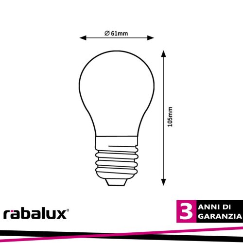 Lampadina Led Filamento 12WCaratteristiche del prodotto:Categoria di prodotto=Lampadina:Temperatura del colore=bianco caldo:Flusso luminoso della sorgente luminosa (lm)=1500:Specifiche della sorgente luminosa=12:Tecnologia LED=SÃ:Protezione IP=IP20:Colore della lampada=trasparente:Materiale della lampada=vetro:Materiale del paralume=vetro:Durata della sorgente luminosa (h)=20000:Classe energetica della sorgente luminosa=E:Garanzia (anni)=3:Angolo di illuminazione=360:Consumo energetico ponderato (kwh/1000 Ah)=12.0:PRESA=E27:Tensione applicata=230 V, 50 Hz:Verticale (mm)=105.0:Diametro=60.0:Dimensioni scatola unica X (cm)=61X105MM:Misura unica della scatola Y (cm)=6.0:Misura unica della scatola Z (cm)=11.0:Peso netto (kg)=0,031:Peso lordo=0,056:Temperatura del colore (K)=2700:Wifi=NO:Forma della sorgente luminosa=A60:Intervallo operativo ideale="-20°C 40°