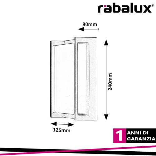 Applique da esterno moderno.La moderna applique da esterno Gorica può essere una buona scelta sia per la terrazza che per qualsiasi altro punto della parete esterna della casa â con il suo aiuto puoi illuminare ad esempio il marciapiede che conduce alla porta d'ingresso. Questo apparecchio nero opaco cuboide in alluminio è completato da un paralume in plastica lattiginosa che emette luce su un'ampia superficie. La Gorica può essere utilizzata con una singola lampadina con una potenza fino a 12 W. Il tipo di attacco è E27. A seconda delle tue preferenze, puoi scegliere una fonte di luce bianca calda o naturale. Questa lampada da esterno ha le seguenti dimensioni: larghezza 125 mm, altezza 240 mm, distanza dalla parete 80 mm. La protezione IP44 della lampada assicura che sia protetta contro l'intrusione di oggetti fino a 1 mm di diametro e contro gli spruzzi d'acqua da qualsiasi direzione. L'applique da esterno Gorica viene fornita senza fonte luminosa.CARATTERISTICHE DEL PRODOTTO:Categoria di prodotto=Illuminazione esterna:Tipo=Applique da esterno:Stile=Moderno:Camera=terrazza, muro di casa:Protezione IP=IP44:Colore della lampada=nero opaco:Materiale della lampada=alluminio:Colore del paralume=lattiginoso:Materiale del paralume=plastica:Sorgente luminosa inclusa=NO:Numero di presa=1:PRESA=E27:Specifiche dell'apparecchio di illuminazione=E27 1x MAX 12W:Tensione applicata=230V, 50Hz:Distanza dal muro=80,0:Orizzontale (mm)=125,0:Verticale (mm)=240,0:Misura scatola unica X (cm)=15.0:Misura scatola unica Y (cm)=8.0:Dimensione scatola unica Z (cm)=25.0:Peso netto (kg)=0,795:Peso lordo=0,893:Classe di protezione=I