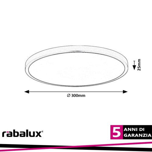Domelight per interno.La plafoniera Paulos in stile tecnico offre una soluzione pratica e salvaspazio per illuminare il tuo soggiorno, la tua camera da letto o la tua stanza di lavoro. Questo elegante modello rotondo di colore bianco è interamente realizzato in plastica e, grazie al suo design puro, si fonde discretamente con l'arredamento della stanza, quindi può essere un'ottima scelta per quasi tutte le case moderne. La plafoniera ha una sorgente luminosa a LED integrata di classe energetica F con una potenza di 24 W, un flusso luminoso di 2.230 lumen con paralume e 2.400 lumen senza paralume. La temperatura di colore della sorgente luminosa è di 4.000 K e ha una durata davvero eccezionale: ti serve per 50.000 ore! Con la sua luce bianca naturale, Paulos ti aiuta a ottenere un effetto moderno e puro che non è solo l'ideale nelle stanze più utilizzate della tua casa, ma anche per lavorare. Questa plafoniera ha un diametro di 300 mm, la distanza dal soffitto è di soli 25 mm.Caratteristiche del prodotto:Categoria di prodotto=Illuminazione interna:Stile=Tecnico:Camera=soggiorno, camera da letto, studio:Temperatura del colore=bianco naturale:Flusso luminoso della sorgente luminosa (lm)=2230:Specifiche della sorgente luminosa=24:Tecnologia LED=SÃ:Protezione IP=20:Colore della lampada=bianco:Materiale della lampada=plastica:Colore del paralume=bianco:Materiale del paralume=plastica:Durata della sorgente luminosa (h)=50000:Classe energetica della sorgente luminosa=F:Garanzia (anni)=5:Consumo energetico ponderato (kwh/1000 Ah)=24.0:Specifiche dell'apparecchio di illuminazione=LED 24W:Tensione applicata=230V, 50Hz:Distanza dal soffitto=25.0:Diametro=300.0:Misura unica della scatola X (cm)=30.5:Misura unica della scatola Y (cm)=30.5:Misura unica della scatola Z (cm)=3.0:Peso netto (kg)=0,53:Peso lordo=0,8:Temperatura del colore (K)=4000:Vetro di ricambio =n.20079:Wifi=NO:Classe di protezione=I:Flusso luminoso della sorgente luminosa=2400