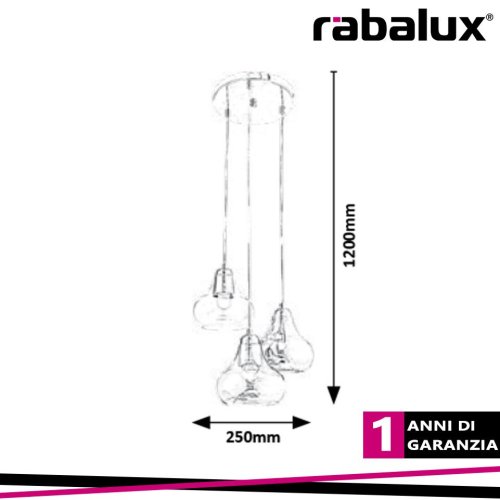 Pendente Jezabel 250mm 3xe27 in vetro.La sospensione tripla Jezabel in stile moderno è consigliata principalmente per essere utilizzata in soggiorno o sopra il tavolo da pranzo. L'apparecchio cromato del modello in metallo è completato da sottili paralumi in vetro color fumo e da una base decorativa rotonda, anch'essa color cromo. Jezabel può essere utilizzato con tre sorgenti luminose fino a 60 W ciascuna, tipo di presa: E27. Se desideri migliorare l'atmosfera intima e intima di una determinata stanza, scegli una fonte di luce bianca calda. Jezabel ha un diametro di 250 mm e la sua distanza dal soffitto è di 1200 mm. La sospensione tripla viene consegnata senza fonte di luce.CARATTERISTICHE DEL PRODOTTO:categoria di prodotto=Illuminazione interna:Tipo=Pendenti:Stile=Moderno:Camera=soggiorno:Tecnologia LED=No:Protezione IP=IP20:Colore della lampada=cromo:Materiale della lampada=metallo:Colore del paralume=colore sfumato:Materiale del paralume=vetro:Garanzia (anni)=1:Numero di presa=3:PRESA=E27:Specifiche dell'apparecchio di illuminazione=E27 3x MAX 60W:Tensione applicata=230V, 50Hz:Distanza dal soffitto=1200.0:Orizzontale (mm)=250,0:Dimensioni =250X1200MM:Peso netto (kg)=2.9:Peso lordo=3.1:Vetro di ricambio nr.=19659, 19660, 19661:Classe di protezione=I