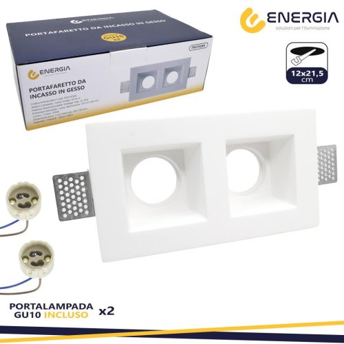 PORTAFARETTO INCASSO IN GESSO RETTANGOLARE 2XGU10 12X21,5CM