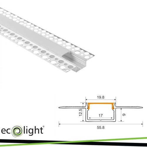 PROFILO DA INCASSO GPS02, ANODODIZZATO + COPERTURA OPALE 2M