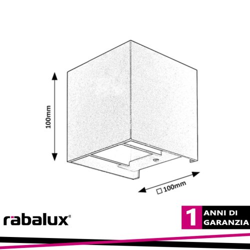 Applique da parete.La moderna applique da parete per esterni Solin è realizzata in alluminio bianco opaco ed è completata da un paralume in plastica. Puoi installarla sulla terrazza o in qualsiasi punto della parete esterna della casa. Grazie al suo design speciale proietta spettacolari fasci di luce sulla parete verso l'alto e verso il basso, la cui forma può essere modificata in base ai tuoi desideri. Solin può essere utilizzata con una singola lampadina con una potenza fino a 42 W. Il tipo di attacco è G9. Se desideri un'illuminazione morbida e accogliente, ti consigliamo di scegliere una lampadina che emetta luce bianca calda. Le dimensioni di questa lampada cubica per esterni sono 100x100 mm e la sua distanza dalla parete è anch'essa di 100 mm. Ha una protezione IP54 che garantisce la protezione dalla polvere e dagli spruzzi d'acqua da tutte le direzioni. Questa lampada è fornita senza una sorgente luminosa.Caratteristiche del prodotto:Categoria di prodotto=Illuminazione esterna:Tipo=Applique da esterno:Stile=Moderno:Camera=muro di casa:Specifiche della sorgente luminosa=5W:Protezione IP=Grado IP54:Colore della lampada=bianco opaco:Materiale della lampada=alluminio:Materiale del paralume=plastica:Sorgente luminosa inclusa=NO:Numero di lampade=1:PRESA =G9:Specifiche dell'apparecchio di illuminazione=G9 1x MAX 5W:Tensione applicata=230V, 50Hz:Distanza dal muro=100.0:Orizzontale (mm)=100.0:Verticale (mm)0100.0:Misura unica della scatola X (cm)=11.0:Misura unica della scatola Y (cm)=11.0:Misura unica della scatola Z (cm)=11.0:Peso netto (kg)=0,2:Peso lordo=0,32:Wifi=NO:Classe di protezione=I