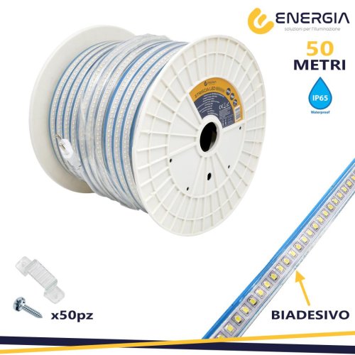 STRIP LED AC 220V 15W/M 3000K CON BIADESIVO MATASSA DA 50MT