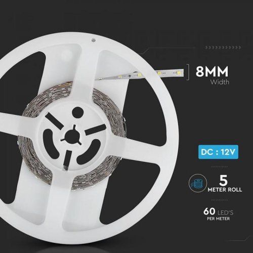 Dati tecnici Luce=  :Colore della luce =Bianco:Temperatura di colore=6000K:Flusso luminoso =300 LM/m.:Quantità LED=60 LED/m.:LM / LED=5:Fascio Luminoso=120 °: