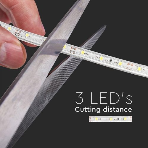 Funzionalità=  :Dimmerabile=No:IP Protezione=IP65:Segni di taglio=Taglio ogni 3 LED, lungo i segni di taglio.:Tempo innesco 100%=0.001 secondo:Stabilità del colore=<6:Culmine d'intensità dichiarata in candele (cd )=/:Numero cicli accensione / spegnimento=15000:Condizioni di lavoro=Non adatto per l'uso in condizioni estreme. Condizioni normali di lavoro tra -20 ° + 45 °: