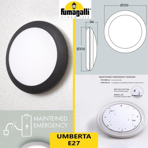 • UMBERTA NERO OPALE LED 15W 4000K EMERGENZA