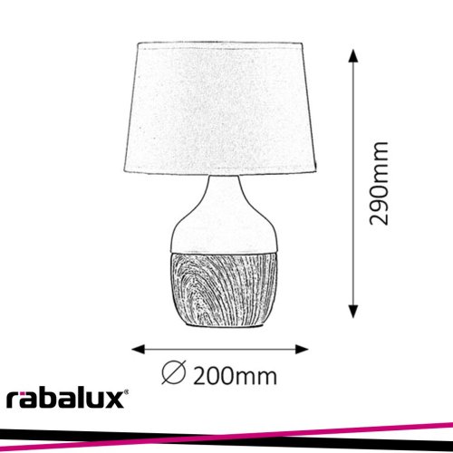 Lampada da comodino.Una lampada da comodino dallo stile sempre alla moda con 1 attacco E14. Una lampada in ceramica di colore beige alta 29 cm con un diametro di 20 cm e un paralume in tessuto bianco. Può essere utilizzato anche con una sorgente luminosa a risparmio energetico fino a 40W.CARATTERISTICHE DEL PRODOTTO:Categoria di prodotto=Illuminazione interna:Tipo=Lampade da comodino:Stile=scandinavo:Camera=soggiorno, camera da letto:Protezione IP=IP20:Colore della lampada=beige:Materiale della lampada=ceramica:Colore del paralume=bianco:Materiale del paralume=tessile:Numero di prese=1:PRESA=E14:Specifiche dell'apparecchio=E14 1xMAX 40W:Tensione applicata=230V, 50 Hz:Verticale (mm)=290,0:Diametro=200,0:Misura unica della scatola X (cm)=20.5:Misura unica della scatola Y (cm)=23.5:Misura unica della scatola Z (cm)=20.5:Peso netto (kg)=0,68:Peso lordo=0,85:Tipo di interruttore=con interruttore a cavo:Vetro di ricambio n.=19382:Classe di protezione=II